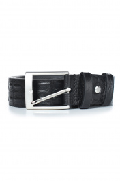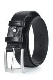 Ремень в обрезку, с обработкой краев, без обстрочки ремня по периметру, с пряжкой и шлевкой на запряжнике, с одной передвижной шлевкой,с тиснением на ремне. Цвет фурнитуры - никель. Размеры: 1150x3x35