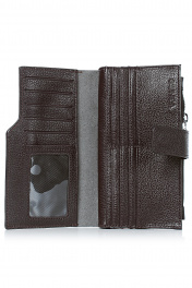 Портмоне на два отделения, одно отделение закрывается цупфером на кнопку, второе отделение для монет закрывается на застежку-молнию, с отделением для бумажных купюр, с открытыми карманами для пластиковых карт, с карманом с прозрачной вставкой. Цвет фурнит Размеры: