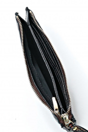 Портмоне на два отделения, закрывающихся на застежку-молнию, с поводком на движке, с отделениями для пластиковых карт, с отделением для монет, закрывающимся на застежку-молнию, с открытым центральным карманом-перегородкой. Цвет фурнитуры - золото. Размеры:
