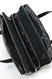 Сумка на три отделения, закрывающиеся на застежку-молнию, с двумя короткими ручками длиной 420+-10мм, с двумя ручкодержателями для ручки-ремня, со съемной регулирующейся ручкой-ремнем максимальной длины 1190+-10мм, с украшением на передней стенке, с пукля Размеры: