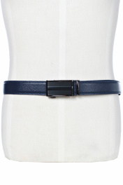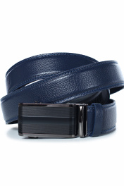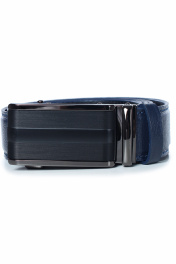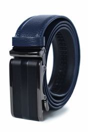 Ремень в обрезку, с обработкой краев, с обстрочкой края, с металлической пряжкой-трещоткой, с одной кожаной шлевкой. Фурнитура - черный никель. Размеры: 1350x3x34