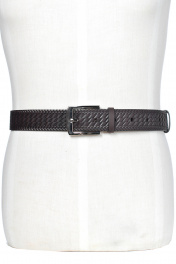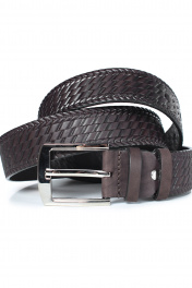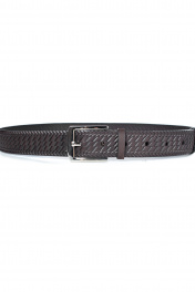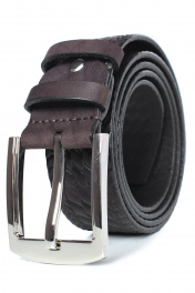 Ремень в обрезку, с обработкой краев, без обстрочки ремня по периметру, с пряжкой и шлевкой на запряжнике, с одной передвижной шлевкой, с тиснением. Цвет фурнитуры-никель. Размеры: 1150x3x40