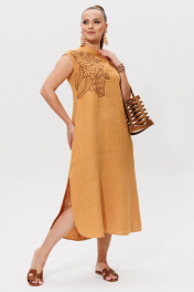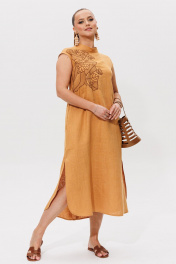 Это стильное летнее платье- сарафан с карманами идеально подходит для тёплых дней.Лёгкий,воздухопроницаемый лен обеспечит вам комфорт даже в самый жаркую погоду.Платье А силуэта идеально сидит на фигуре, подчёркивая её достоинства и создавая элегантный силуэт. Длина платья макси придает образу утончённость а наличие удобных карманов и высоких разрезов по бокам, добавляет практичность. Платье подходит для беременных женщин, а также для женщин с особенностями фигуры. Платье со стойкой по горловине и застёжкой сзади на потайную молнию. Изюминкой этого платья является дизайнерская вышивка. Это платье станет отличным выбором, как для повседневных выходов так и для вечерних прогулок.