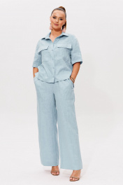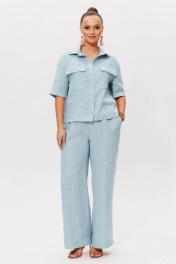 Льняной костюм двойка отличный выбор для женщин которые ценят комфорт и стиль.Этот комплект состоит из рубашки и брюк, идеально подходит для жарких дней. Рубашка прямого силуэта с воротником стойкой и застёжкой на петли и пуговицы. По переду имеются накладные карманы. Брюки прямого силуэта с резинкой по всей ширине брюк и декоративным шнурком. Также имеется накладные функциональные карманы.Большая подгибка позволяет ""подогнать"" брюки на любой рост.