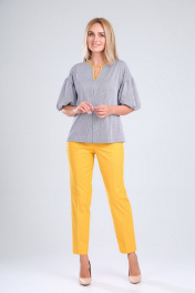 Блуза и брюки из хлопка с вырезом капелька Gamma Gracia 474 медовый-белый-синяя-полоса