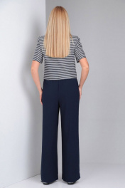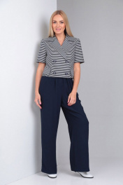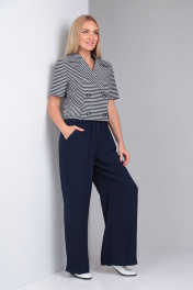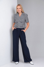 Костюм синий 2-ка из льна с укороченным жакетом и широкими брюками Gamma Gracia 537 синий-синий-белая-полоска