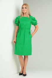 Зеленое летнее платье из хлопка с кулисами и карманами Gamma Gracia 564 зеленый