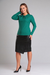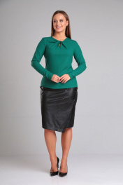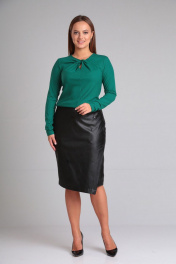 Комплект блузон и юбка из вискозы и экокожи для повседневной носки Gamma Gracia 686 черный-зеленый