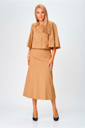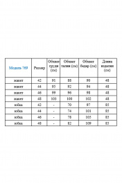 Комплект 2-х предметный. Жакет без подкладки, двухбортный с застежской на кнопке. Горловина оформлена плосколежащим воротником. Жакет прямого силуэта, на полочке с выточкой от низа под грудь. Главную роль в жакете играет втачной рукав, очень широкий, расклешонный со складками по окату. Спинка со средним швом и талиевыми вытачками. Юбка на подкладке, "шестиклинка" красивого расширенного к низу силуэта. Верх юбки оформлен притачным поясом, с застежкой на кнопку. Потайная молния в левом боковом шве.