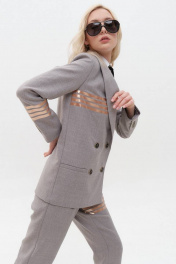 Базовый Жакет в красивом сером оттенке − для тех, кто любит собирать образ за несколько минут и при этом оставаться с прикованными взглядами. Благодаря мягкой текстуре и свободному силуэту - жакет подарит бесконечное удобство его обладательнице. Благородный серый оттенок жакета дополнен рыжей отделочной строчкой и пуговицами глубокого шоколадного цвета в золотом обрамлении. Модель, выполнена из полушерсти (45% шерсти мериноса в составе), на поливискозной подкладке в тон. Спинка из двух частей со швом посередине, рукав втачной с черырьмя пуговицами, воротник в виде шальки. Тренд на лаконичные костюмы, которые можно носить каждый день и не только в офис - актуален как никогда. Добавьте к нему черный топ или платье артикул из тончайшей шерсти мериноса, под пояс или без - и это станет готовым вечерним решением. Добавьте в комплект брюки в тон - и он станет прекрасным офисным вариантом. Добавьте однотонный спортивный костюм в сливочном цвете и вы получите расслабленный стиль или образ для прогулки.