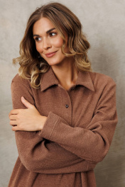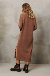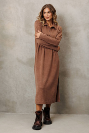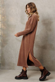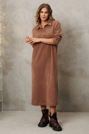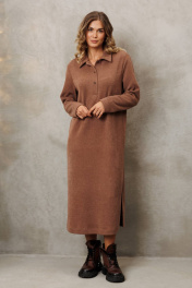 Платье прямого силуэта с воротником поло из теплого трикотажного полотна. Рукав втачной одношовный. Длина платья - 120 см, длина рукава - 60 см
