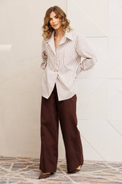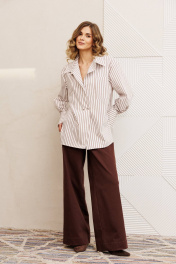 Брюки, рубашка Gizart 5443 бело коричневый, шоколад джинс
