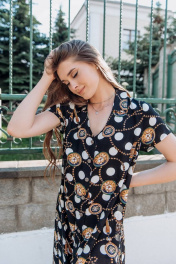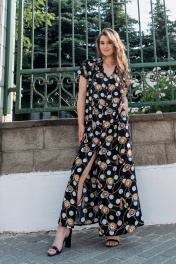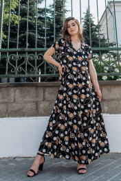 Легкое платье, расширенное к низу из штапельной ткани. Изделие на пуговицах с карманами в боковых швах. По переду-нагрудные вытачки, воротник мягкий отложной, рукав втачкой короткий. Платье шикарно подойдет для любого мероприятия, отдыха и повседневной жизни. Длина изделия р.42-44 - 143 см, р.46-50 - 144 см, р.52-56 - 145 см, р.58-62 - 146 Длина рукава р.42-44 - 16 см, р.46-50 - 17 см, р.52-56 - 18 см, р.58-62 - 19см