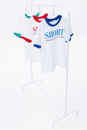 Футболка: классический крой и облегание контрастная печать контрастная бейка на горловине и рукавах Длина футболки по спинке: 62-66 см. Длина рукава: 20-22 см. Полуобхват груди в футболке: 42 р - 50 см, 44 р - 52 см, 46 р - 54 см, 48 р - 56 см, 50 р - 58 см.