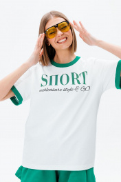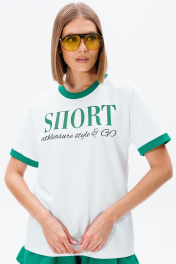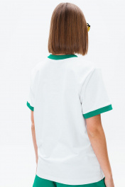 Белая и зеленая футболка с контрастной печатью и бейками GO F1006/01-01(P23-02)