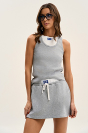 Топ с круглым вырезом без рукавов - самая универсальная вещь для вашего гардероба! Собирайте бесконечное количество стильных луков вместе с GO! Топ: дизайнерская нашивка, зафиксированная булавками (можно крепить в любом месте) плотное облегание комфортная хлопковая ткань. Для придания луку особенности используйте принцип многослойности. Носите майку поверх футболок или под рубашку, при условии, что хотя бы часть каждого изделия остаётся видимой окружающим. При этом каждый слой является самостоятельным (лук останется целостным, если убрать одно из изделий) Полуобхват груди в топе: 42 р - 35 см, 44 р - 37 см, 46 р. - 39 см, 48 р - 41 см.