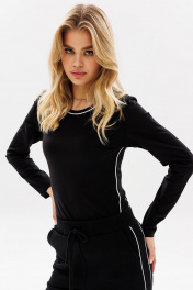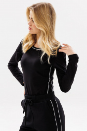 Круглогодичный черный лонгслив с кантами и облегающим силуэтом GO F1021/40-02. 164-170