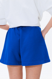 Расширенные к низу, трапециевидный силуэт, высокая посадка, пояс из кашкорсе, пояс с резинкой и шнуром, удобные боковые карманы. Длина шорт по боковому шву с поясом: 38-40 см. Полуобхват бедер шорт на уровне карманов: 42 р - 56 см, 44 р - 58 см, 46 р. - 60 см, 48 р. - 62 см, 50 р. - 64 см.