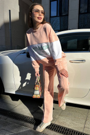 Стильный женский спортивный костюм состоит из оверсайз свитшота и брюк. Свитшот с контрастной вставкой и вышивкой Athleisure станем любимым в гардеробе. Athleisure - расслабленный и непринужденный стиль, основанный по большей части на спортивных базовых вещах. По сути, это даже не стиль, а способ носить базовые спортивные вещи. Свитшот: выполнен из двух контрастных цветов дизайнерская вышивка свободный крой манжеты рукавов, низ изделия и горловина из кашкорсе Брюки: • прямой силуэт • удобные карманы • стрелки по переду зафиксированы строчкой • пояс из ткани кашкорсе с резинкой и шнуром внутри Длина свитшота по спинке: 72-74 см. Длина рукава с плечом: 69-71 см для роста 164-170 см, 72-74 см для роста 170-176 см. Полуобхват груди свитшота: 42 р - 66 см, 44 р - 68 см, 46 р. - 70 см, 48 р. - 72 см, 50 р. - 74 см. Длина брюк по боковому шву с поясом: 102-104 см для роста 164-170 см, 105-107 см для роста 170-176 см. Полуобхват бедер брюк: 42 р - 48 см, 44 р - 50 см, 46 р. - 52 см, 48 р. - 54 см, 50 р. - 56 см.