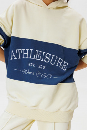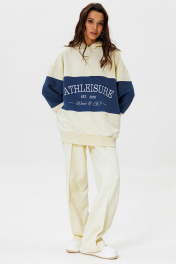 Стильный костюм с оверсайз худи с контрастной вставкой и вышивкой Athleisure станет любимым в гардеробе. Athleisure - расслабленный и непринужденный стиль, основанный по большей части на спортивных базовых вещах. По сути, это даже не стиль, а способ носить базовые спортивные вещи. Худи: выполнен из двух контрастных цветов дизайнерская вышивка свободный крой манжеты рукавов, низ изделия и горловина из кашкорсе удобный капюшон Брюки: простроченные стрелки на передних половинках классическая посадка, немного заужены к низу пояс из кашкорсе, с резинкой и шнуром внутри удобные боковые карманы Длина худи по спинке: 72-74 см. Длина рукава свитшота с плечом: 69-71 см для роста 164-170 см, 72-74 см для роста 170-176 см. Полуобхват груди худи:42 р - 66 см, 44 р - 68 см, 46 р. - 70 см, 48 р. - 72 см, 50 р. - 74 см. Длина брюк по боковому шву с поясом: 102-104 см для роста 164-170 см, 105-107 см для роста 170-176 см. Полуобхват бедер брюк: 42 р - 48 см, 44 р - 50 см, 46 р. - 52 см, 48 р. - 54 см, 50 р. - 56 см.