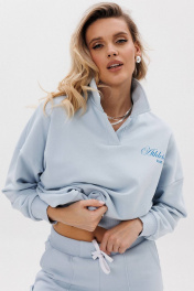 Для очаровательного образа не хватает воротничка! Воротник — маленькая деталь, которая «смягчает» и делает нежным весь аутфит. Брюки со стрелками добавят образу строгости и деловитости, что позволит носить костюм как на прогулки, так и в офис. Свитшот: - отложной воротник - свободный силуэт - контрастная печать на левой стороне переда - манжеты рукавов и низ свитшота из ткани кашкорсе Брюки: - прямой силуэт - удобные карманы - стрелки по переду зафиксированы строчкой - пояс из ткани кашкорсе с резинкой и шнуром Длина свитшота по спинке 65-68 см. Длина рукава свитшота с плечом: 69-71 см для роста 164-170 см, 72-74 см для роста 170-176 см. Полуобхват груди свитшота: 42 р. - 66 см, 44 р. - 68 см, 46 р. - 70 см, 48 р. - 72 см, 50 р. - 74 см, 52 р. - 76 см. Длина брюк по боковому шву с поясом: 102-104 см для роста 164-170 см, 105-107 см для роста 170-176 см. Полуобхват бедер брюк: 42 р. - 48 см, 44 р. - 50 см, 46 р. - 52 см, 48 р. - 54 см, 50 р. - 56 см, 52 р. - 58 см.