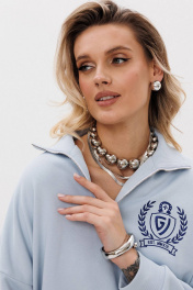 Женский яркий, повседневный костюм, состоящий из оверсайз свитшота с контрастной вышивкой и брюк со стрелками. Это находка для тех, кто ценит свободу, стиль и не хочет отказывать себе в комфорте 24/7. Свитшот: дизайнерская вышивка свободный силуэт короткая застежка - молния манжеты рукавов, стойка и низ свитшота из ткани кашкорсе Брюки: прямой силуэт удобные карманы стрелки по переду зафиксированы строчкой пояс из ткани кашкорсе с резинкой и шнуром Длина свитшота по спинке 64-67 см. Длина рукава свитшота с плечом: 69-71 см для роста 164-170 см, 72-74 см для роста 170-176 см. Полуобхват груди свитшота: 42 р - 64 см, 44 р - 66 см, 46 р - 68 см, 48 р - 70 см, 50 р - 72 см, 52 р - 74 см. Длина брюк по боковому шву с поясом: 102-104 см для роста 164-170 см, 105-107 см для роста 170-176 см. Полуобхват бедер брюк: 42 р - 48 см, 44 р - 50 см, 46 р. - 52 см, 48 р. - 54 см, 50 р. - 56 см, 52 р. - 58 см.