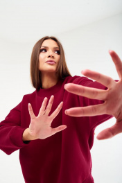 Женский совремеенный свитшот оверсайз из комфортной ткани (футера 3-нитки с начёсом качества пенье). Свитшот имеет спущенную линию плеча и длинный рукав. Горловина, манжеты рукавов и низ свитшота из ткани-компаньена кашкорсе. Перед с вышивкой – логотипом по центру переда в цвет ткани. Длина свитшота 70-73 см. Длина рукава от горловины: 67-69 см для роста 164-170 см, 69-71 см для роста 170-176 см. Полуобхват груди свитшота: 42 р - 66 см, 44 р - 68 см, 46 р. - 70 см, 48 р. - 72 см, 50 р. - 74 см, 52 р. - 76 см.