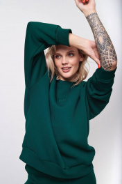 Женский совремеенный свитшот оверсайз из комфортной ткани (футера 3-нитки с начёсом качества пенье). Свитшот имеет спущенную линию плеча и длинный рукав. Горловина, манжеты рукавов и низ свитшота из ткани-компаньена кашкорсе. Перед с вышивкой – логотипом по центру переда в цвет ткани. Длина свитшота 70-73 см. Длина рукава от горловины: 67-69 см для роста 164-170 см, 69-71 см для роста 170-176 см. Полуобхват груди свитшота: 42 р - 66 см, 44 р - 68 см, 46 р. - 70 см, 48 р. - 72 см, 50 р. - 74 см, 52 р. - 76 см.
