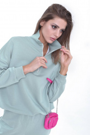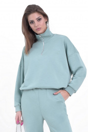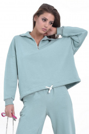 Стильный женский свитшот спортивного стиля покроя оверсайз. Пошит из комфортной всесезонной ткани (петельного футера 3-нитки высшего качества пенье). Свитшот свободного кроя со спущенной линией плеча и длинным рукавом. По центру переда короткая застежка-молния, переходящая в стойку. Низ свитшота дополнен кулисой и шнуром внутри для фиксации ширины изделия на уровне талии. Стойка, манжеты рукавов выполнены из ткани-компаньена кашкорсе. Слева на переде свитшота вышит логотип в цвет ткани. Длина свитшота: 58-60 см для роста 164-170 см, 60-62 см для роста 170-176 см. Длина рукава от горловины: 70-72 см для роста 164-170 см, 72-74 см для роста 170-176 см. Полуобхват груди: 66 см для 42 р., 68 см для 44 р., 70 см для 46 р., 72 см для 48 р., 74 см для 50 р., 76 см для 52 р.