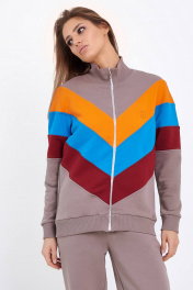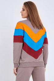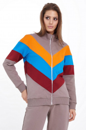 Женский трендовый джемпера на молнии, пошит из комфортной, всесезонной ткани. Джемпер с дизайнерскими, наклонными резами и на переде, и на спинке, выполненных из разных контрастных оттенков. Рукава имеют манжеты. Воротник-стойка, манжеты, низ джемпера выполнены из ткани-компаньена кашкорсе. На левом переде вышит логотип в цвет полоски. Длина свитшота по спинке: 65-67 см для роста 164-170 см, 67-69 см для роста 170-176 см. Длина рукава от горловины: 71-73 см для роста 164-170 см, 73-75 см для роста 170-176 см. Полуобхват груди: 42 р. - 51 см, 44 р. - 53 см, 46 р. - 55 см, 48 р. - 57 см, 50 р. – 59 см, 52 р. – 61 см.