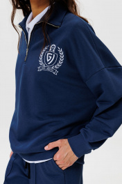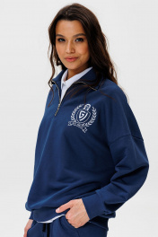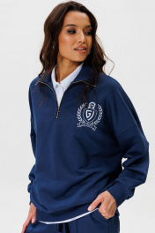 Синий демисезонный джемпер из хлопка с вышивкой, свободный крой GO F4077/20-01. 170-176