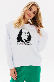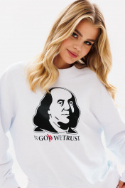 Вы не останетесь незамеченной в свитшоте с дизайнерской печатью “Бенджамин Франклин” от GO! свободный силуэт спущенное плечо горловина, манжеты, низ свитшота - из кашкорсе дизайнерская печать на переде Длина свитшота 62-64 см. Длина рукава от горловины 70-72 см для 164-170 см, 72-74 см для 170-176 см. Полуобхват груди свитшота: 42 р - 64 см, 44 р - 66 см, 46 р - 68 см, 48 р - 70 см, 50 р - 72 см, 52 р - 74 см.