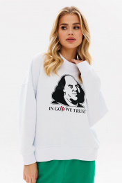 Белый свитшот с печатью и спущенными плечами GO F4083/01-01. 170-176