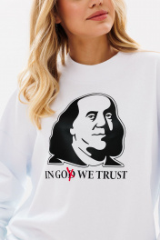 Вы не останетесь незамеченной в свитшоте с дизайнерской печатью “Бенджамин Франклин” от GO! свободный силуэт спущенное плечо горловина, манжеты, низ свитшота - из кашкорсе дизайнерская печать на переде Длина свитшота 62-64 см. Длина рукава от горловины 70-72 см для 164-170 см, 72-74 см для 170-176 см. Полуобхват груди свитшота: 42 р - 64 см, 44 р - 66 см, 46 р - 68 см, 48 р - 70 см, 50 р - 72 см, 52 р - 74 см.