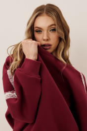 Найден рецепт хорошего настроения! Главные ингредиенты - супер комфортный свитшот от GO! Свитшот: два размера 42-44 и 46-48 горловина и манжеты из кашкорсе вышивка в цвет с левой стороны переда контрастный кружево от горловины до манжеты низ на регулируемой резинке Длина свитшота по спинке: 52 см для роста 170-176 Длина рукава от горловины: 71-73 см Полуобхват груди свитшота: 42-44 р- 66 см, 46-48р - 100 см