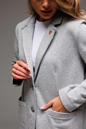 Костюм Gowear из футера в стиле smart casual поможет создать в меру строгий и одновременно расслабленный образ. Костюм состоит из жакета и юбки из эластичной ткани кошкорсе. Жакет прямого силуэта с воротником и лацканами, имеет удобные карманы и застежку на 2 пуговицы. На левом лацкане вышивка-логотип в контрастном цвете. Низ и борта имеют открытые края (эффект необработанного шва), укреплены дополнительной строчкой. Жакет без подкладки. Юбка прямая, облегающая фигуру с разрезом на спинке. Пояс цельнокроенный с резинкой внутри. Длина жакета по спинке 72-74 см. Длина рукава: 60-62 см для роста 164-170 см, 62-64 см для роста 170-176 см. Полуобхват груди жакета: 42 р - 48 см, 44 р - 50 см, 46 р. - 52 см, 48 р. - 54 см, 50 р. - 56 см, 52 р - 58 см. Длина юбки: 80 см. Полуобхват бедер юбки: 42 р - 33 см, 44 р -35 см, 46 р. - 37 см, 48 р. - 39 см, 50 р. - 41 см, 52 р - 43 см.