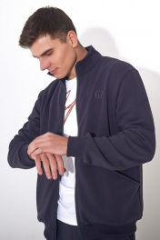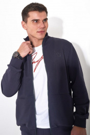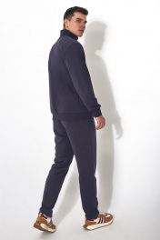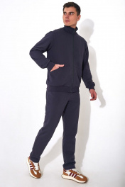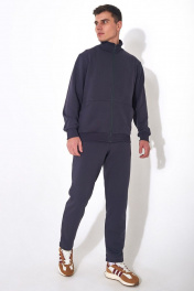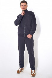 Мужской повседневный спортивный костюм. Пошит из из комфортной всесезонной ткани (петельного футера 3-нитки диагональ без начёса). Состоит из джемпера и брюк. Джемпер – прямого силуэта, с застежкой молнией по переду. По низу изделия притачная манжета из кашкорсе. Воротник - стойка. На переде имеются горизонтальные декоративные подрезы и удобные карманы, обработанные в наклонных швах. Вышивка - логотип в цвет ткани на левой стороне переда. Рукава втачные одношовные длинные с притачной манжетой по низу манжетой из ткани кашкорсе. Вдоль молнии, по рельефным швам и входу в карман - отделочные строчки.Брюки немного зауженные к низу, с притачным поясом на резинке и шнурком внутри. Передняя половинка брюк с боковыми карманами. Длина джемпера по спинке 69-71 см;. Длина рукава: 66-68 см для роста 176-182, 70-72 см для роста 182-188, Полуобхват джемпера по груди: 53 см для 46 р, 55 см для 48 р, 57 см для 50 р, 59 см для 52 р, 61 см для 54 р, 63 см для 56 р, 65 см для 58 р, 67 см для 60 р, 69 см для 62 р; Длина брюк по боковому шву с поясом: 107-109 см для роста 176-182, 112-114 см для роста 176-182, Полуобхват бедер в брюках: 49 см для 46 р, 51 см для 48 р, 53 см для 50 р, 55 см для 52 р, 57 см для 54 р, 59 см для 56 р, 61 см для 58 р, 63 см для 60 р, 65 см для 62 р, 67 см для 64 р.