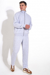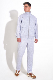 Мужской повседневный спортивный костюм. Пошит из из комфортной всесезонной ткани (петельного футера 3-нитки диагональ без начёса). Состоит из джемпера и брюк. Джемпер – прямого силуэта, с застежкой молнией по переду. По низу изделия притачная манжета из кашкорсе. Воротник - стойка. На переде имеются горизонтальные декоративные подрезы и удобные карманы, обработанные в наклонных швах. Вышивка - логотип в цвет ткани на левой стороне переда. Рукава втачные одношовные длинные с притачной манжетой по низу манжетой из ткани кашкорсе. Вдоль молнии, по рельефным швам и входу в карман - отделочные строчки.Брюки немного зауженные к низу, с притачным поясом на резинке и шнурком внутри. Передняя половинка брюк с боковыми карманами. Длина джемпера по спинке 69-71 см;. Длина рукава: 66-68 см для роста 176-182, 70-72 см для роста 182-188, Полуобхват джемпера по груди: 53 см для 46 р, 55 см для 48 р, 57 см для 50 р, 59 см для 52 р, 61 см для 54 р, 63 см для 56 р, 65 см для 58 р, 67 см для 60 р, 69 см для 62 р; Длина брюк по боковому шву с поясом: 107-109 см для роста 176-182, 112-114 см для роста 176-182, Полуобхват бедер в брюках: 49 см для 46 р, 51 см для 48 р, 53 см для 50 р, 55 см для 52 р, 57 см для 54 р, 59 см для 56 р, 61 см для 58 р, 63 см для 60 р, 65 см для 62 р, 67 см для 64 р.