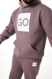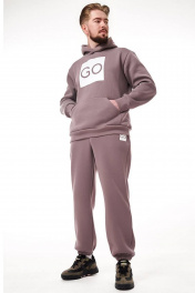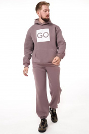 Костюм комфортный покроя oversize, спортивного стиля из комфортной ткани (футера с начесом). Костюм состоит из худи и брюк. Худи прямого силуэта, с притачной манжетой по низу изделия. Худи имеет двойной капюшон и карман - кенгуру. На переде контрастная печать GO. Рукава втачные с манжетой. Брюки с притачным поясом с резинкой и шнурком внутри. Передняя половинка брюк с боковыми карманами. Низ брюк присобран на резинку. Длина худи по спинке 69-75 см в зависимости от размера и роста. Длина рукава: 64-67 см для роста 176-182 см, 68-71 см для роста 182-188 см. Полуобхват груди худи: 46 р. - 56 см, 48 р. - 58 см, 50 р. - 60 см, 52 р. - 62 см, 54 р. - 41 см, 56 р. - 66 см, 58 р. - 68 см, 60 р. - 70 см, 62 р. - 72 см. Длина брюк по боковому шву с поясом: 103-105 см для роста 176-182, 107-109 см для роста 182-188. Полуобхват бедер: 46 р. - 52 см, 48 р. - 54 см, 50 р. - 56 см, 52 р. - 58 см, 54 р. - 60 см, 56 р. - 62 см, 58 р - 64 см, 60 р - 66 см, 62 р - 68 см.