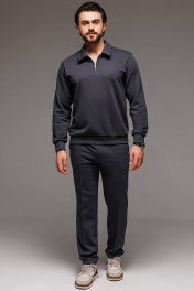 Для образа игрока в гольф не хватает воротничка! Воротник - деталь свитшота с застежкой поло, которая почекнет весь аутфит. Брюки со стрелками добавят образу строгости и деловитости, что позволит носить костюм как на прогулки, так и в офис. Пошит из комфортной ткани - футера 3-нитки без начеса. Свитшот: отложной воротник и застежка на короткую молнию сдержанный силуэт вышивка-логотип в цвет ткани на левой стороне переда манжеты рукавов и низ из ткани кашкорсе Брюки: классический силуэт удобные карманы стрелки по переду зафиксированы строчкой пояс из ткани кашкорсе с резинкой и шнуром внутри Длина свитшота по спинке 68 - 74 см. Длина рукава свитшота (спущенный рукав на 3-4 см): 59-61 см для роста 176-182 см, 62-64 см для роста 182-188 см. Полуобхват груди свитшота: 46 р. - 54 см, 48 р. - 56 см, 50 р. - 58 см, 52 р - 60 см, 54 р - 62 см, 56 р - 64 см, 58 р - 66 см, 60 р - 68 см. Длина брюк по боковому: 105-107 см для роста 176-182 см, 108-110 см для роста 182-188 см. Полуобхват бедер брюк: 46 р - 50 см, 48 р - 52 см, 50 р - 54 см, 52 р - 56 см, 54 р - 58 см, 56 р - 60 см, 58 р - 62 см, 60 р - 64 см.