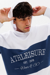 Стильный костюм с оверсайз худи с контрастной вставкой и вышивкой Athleisure станем любимым в гардеробе. Athleisure - расслабленный и непринужденный стиль, основанный по большей части на спортивных базовых вещах. По сути, это даже не стиль, а способ носить базовые спортивные вещи. Худи: выполнен из двух контрастных цветов дизайнерская вышивка свободный крой манжеты рукавов, низ изделия и горловина из кашкорсе удобный капюшон Брюки: манжеты по низу брюк классическая посадка, заужены к низу пояс и манжеты из кашкорсе удобные боковые карманы пояс с резинкой и шнуром внутри Длина свитшота по спинке 72-74 см. Длина рукава свитшота с плечом: 82-84 см для роста 176-182 см, 85-87 см для роста 182-188 см. Полуобхват груди худи: 46 р - 62 см, 48 р - 64 см, 50 р - 66 см, 52 р - 68 см, 54 р - 70 см, 56 р - 72 см, 58 р - 74 см. Длина брюк по боковому: 103-105 см для роста 176-182 см, 106-108 см для роста 182-188 см. Полуобхват бедер брюк: 46 р - 48 см, 48 р - 50 см, 50 р - 52 см, 52 р - 54 см, 54 р - 56 см, 56 р - 58 см, 58 р - 60 см.
