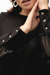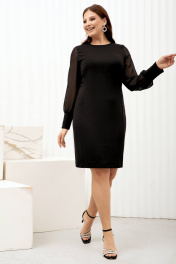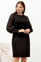 Минималистичное платье футляр из мягкого трикотажа с широкими манжетами и шифоновыми рукавами просто находка для современных модниц plus size. Современный вариант «a little black dress» для женщин с роскошными формами и утонченным чувством вкуса и стиля. Платье полуприлегающего силуэта с округлым вырезом и отрезными бочками зрительно заужает фигуру и вытягивает силуэт. Отрезные бочки с нагрудными вытачками повторяют изгибы фигуры, что выгодно подчеркивает силуэт и стройнит. Объемные шифоновые рукава с широкими манжетами придают легкости образу, широкие манжеты застегиваются на маленькие стильные пуговки. Спинка со средним швом и талиевыми вытачками. Застежка на потайную молнию в среднем шве спинки очень удобно и практично если надо сохранить прическу. Белорусский бренд ГолдСтайл - гарантия отличного качества. Мы с трепетом и любовью относимся к созданию наших моделей для того чтобы они радовали Вас каждый день