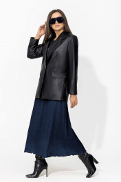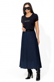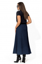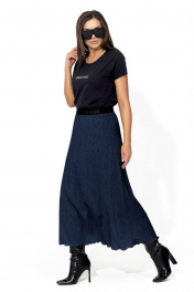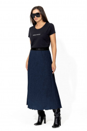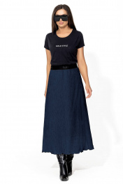 Юбка трапеция средней длинны из жатки с резинкой для женщин Gold Style 2667 темно-синий