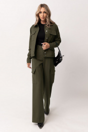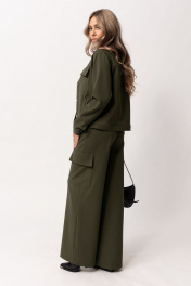 Зеленые прямые брюки с отрезным поясом и карманами Golden Valley 16604 темно-зеленый