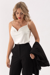Описание внешнего вида: топ на бретелях. Перед двойной, со сгибом по верху. Сгиб формируется в мягкие драпировки. Спинка с V-образным вырезом. Силуэт: прямой Цветовая гамма для верха, подкладки, фурнитуры, отделки: топ выполнена из ткани в одной цветовой гамме.