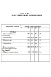 Платье с центральной застежкой на петли и пуговицы, без воротника, с V-образным вырезом горловины. По переду на уровне груди расположены клапаны, закрепленные к полочкам петлей и пуговицей. По боковым швам расположены шлевки для съемного пояса. Рукав короткий, цельнокроенный, с отложной манжетой. По краю борта и горловине- втачная бахрома из основной ткани. Платье со съемным поясом. Платье без подкладки.