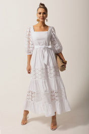 Платье с кружевными вставками и фигурным вырезом Golden Valley 44117-1 белый