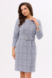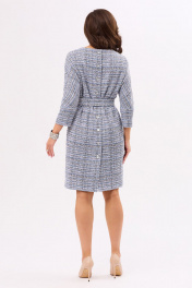 Платье с центральной застежкой на петли и пуговицы в среднем шве спинки, без воротника, с круглым вырезом горловины. По переду с четырьмя встречными складками, расположенными на уровне линии талии. Спинка с четырьмя встречными складками, расположенными на уровне линии талии. Рукав цельнокроенный, длинный, с отрезной манжетой. платье без подкладки