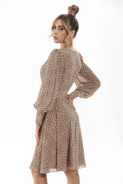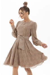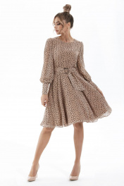 Описание внешнего вида: Платье без воротника, с круглым вырезом горловины, застежкой на потайную молнию в среднем шве спинки. Платье отрезное по линии талии. Верхняя часть переда с талиевыми вытачками. Спинка со средним швом, верхняя часть спинки с талиевыми вытачками. Окат рукава присборен. Платье со съемным поясом. Вид покроя рукава: втачной, длинный, с отрезной манжетой. . Цветовая гамма для верха, подкладки, фурнитуры, отделки: платье из ткани с рисунком. Комплектация: платье на подкладке