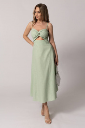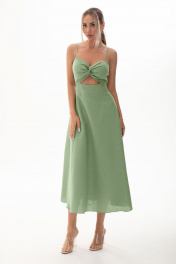 Летнее платье на бретелях с перекрученным лифом и расклешенной юбкой Golden Valley 4937-2 светло-зеленый